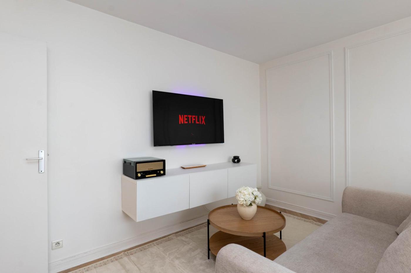Appartement 2 Chambres. This apartment is comprised of a kitchen, a seating area, 2 separate bedrooms and 1 bathroom with a walk-in shower and a hairdryer. Meals can be prepared in the well-fitted kitchen, which comes with a stovetop, a refrigerator, kitchenware and an oven. Featuring a balcony with garden views, this apartment also offers a washing machine and a flat-screen TV with streaming services. The unit offers 2 beds.