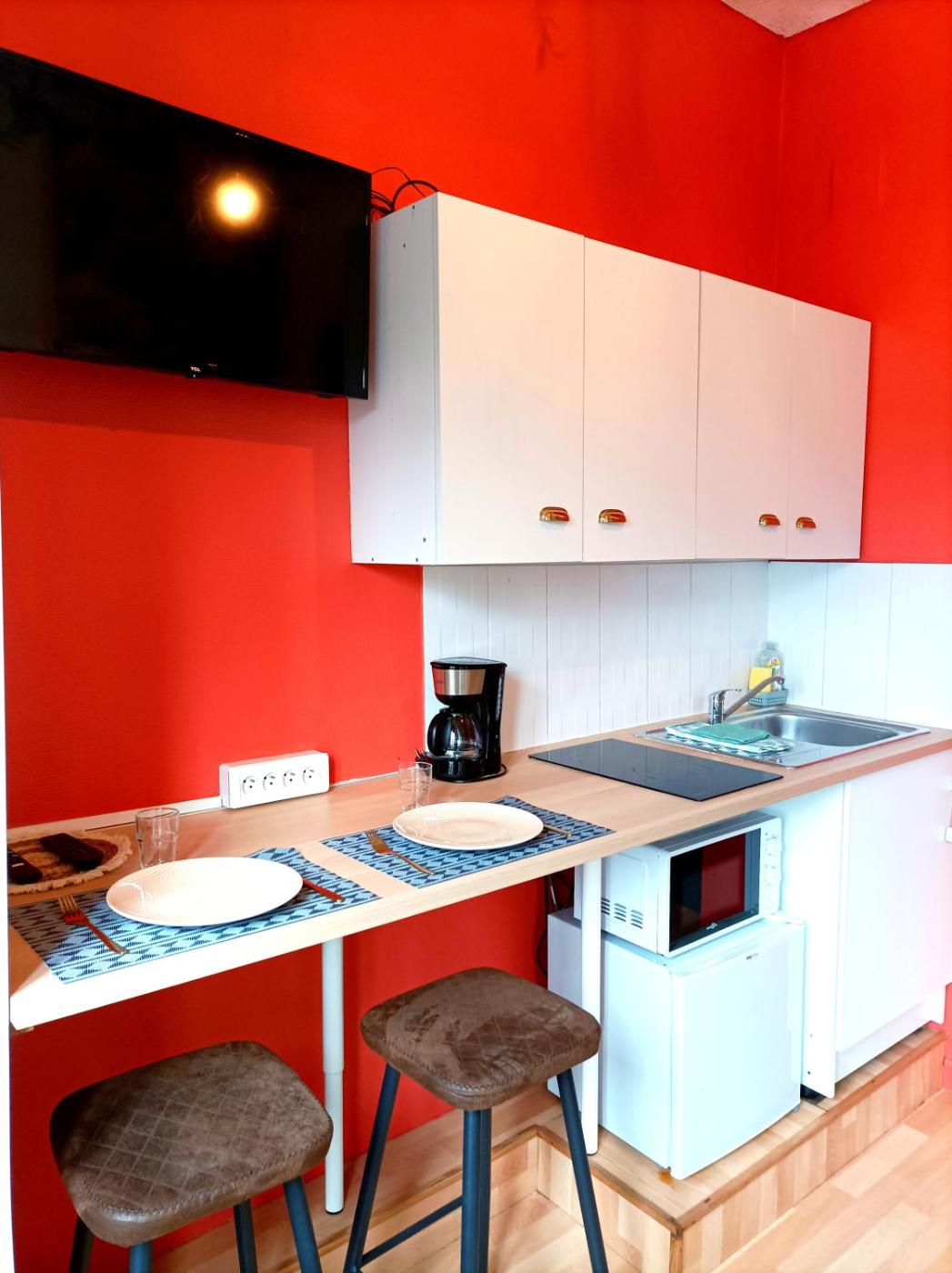Appartement 1 Chambre. The apartment has 1 bedroom and 1 bathroom with a shower and free toiletries. Guests can make meals in the kitchen that features a stovetop, a refrigerator, kitchenware and a microwave. This apartment features a tea and coffee maker, flat-screen TV with streaming services, ancourtyard view, as well as chocolate for guests. The unit has 1 bed.