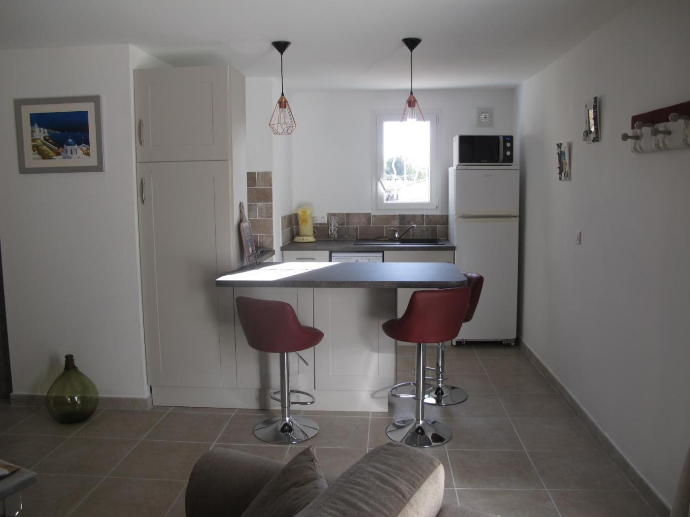 Maison 1 Chambre. Guests will have a special experience as the holiday home offers a pool with a view. Featuring a private entrance, this air-conditioned holiday home consists of 1 living room, 1 separate bedroom and 1 bathroom with a walk-in shower and a hairdryer. Guests will find a stovetop, a refrigerator, a dishwasher and kitchenware in the kitchen. The holiday home also offers a barbecue. Boasting a terrace with garden views, this holiday home also provides soundproof walls and a flat-screen TV. The unit offers 2 beds.