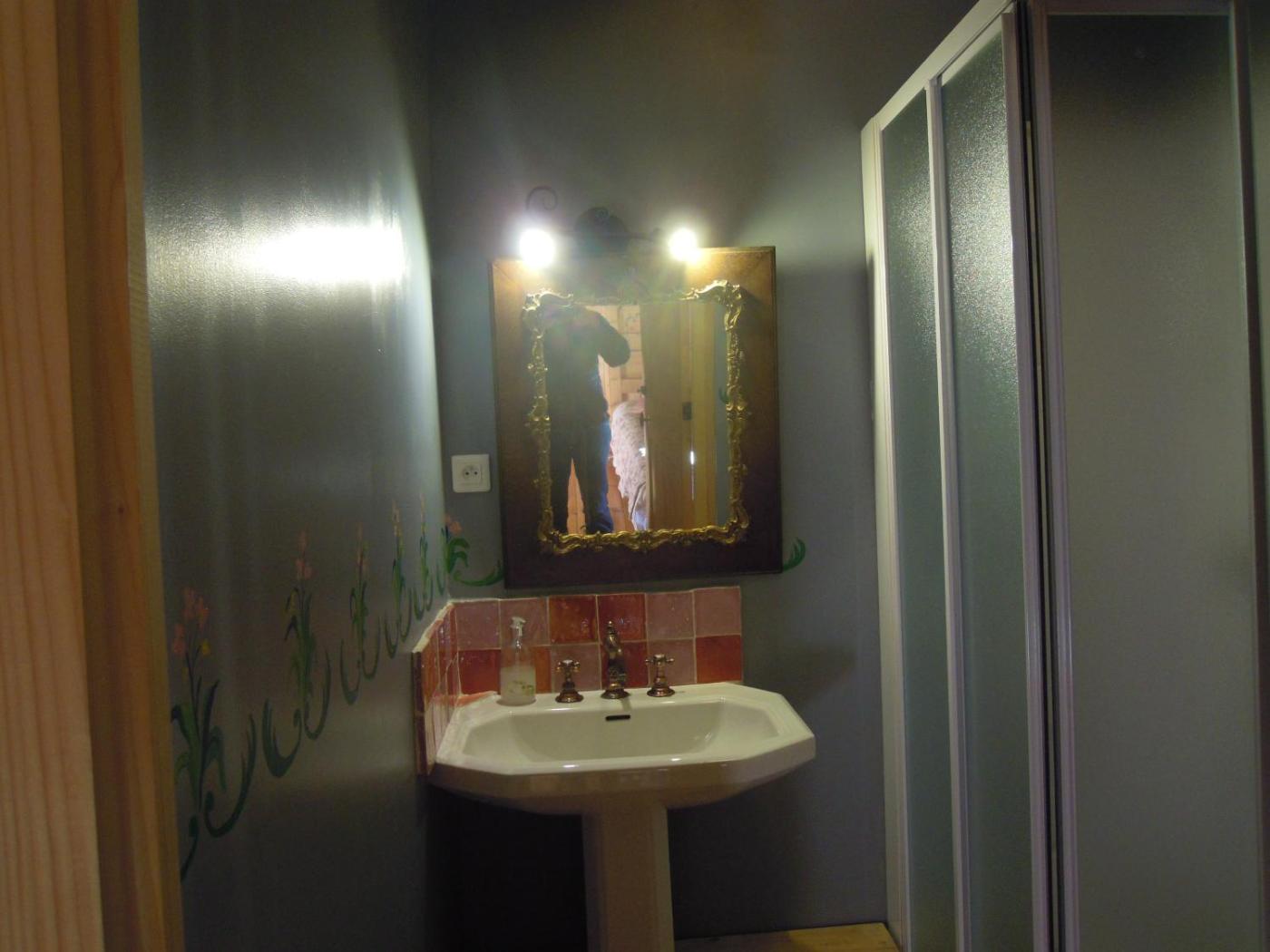 Chambre Familiale - Alambre. Cette chambre familiale bénéficie dune cheminée. Dotée d’une entrée indépendante, cette chambre familiale dispose dun coin repas, dune terrasse donnant sur le jardin et dune salle de bains privative avec douche. Ce logement comporte 3 lits. ;