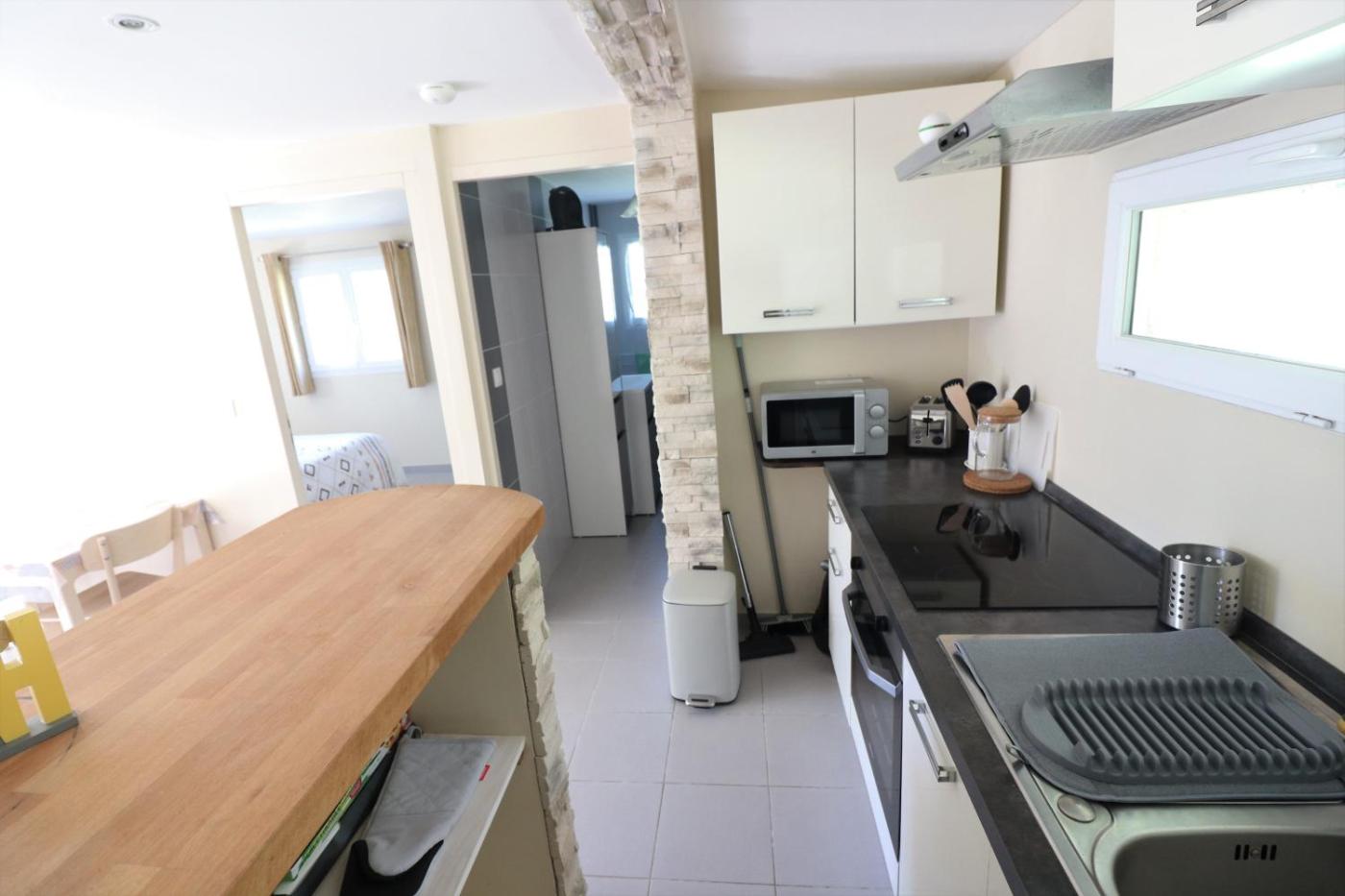 Maison 1 Chambre. Boasting a private entrance, this holiday home features 1 living room, 1 separate bedroom and 1 bathroom with a walk-in shower. Guests will find a stovetop, a refrigerator, kitchenware and an oven in the well-equipped kitchenette. The holiday home also comes with a barbecue. Featuring a terrace with garden views, this holiday home also features a coffee machine and a flat-screen TV. The unit has 2 beds.