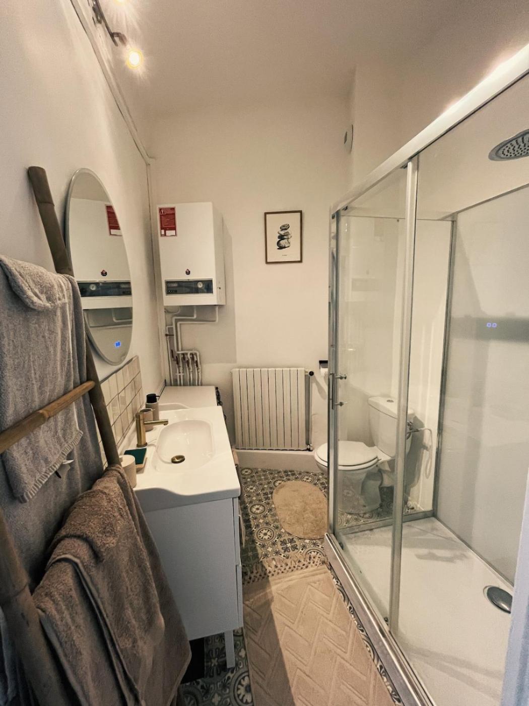 Appartement 1 Chambre. This apartment comprises 1 living room, 1 separate bedroom and 1 bathroom with a shower and free toiletries. Guests can make meals in the kitchen that is equipped with a stovetop, a refrigerator, a dishwasher and kitchenware. The apartment features parquet floors, a seating area with a flat-screen TV, a washing machine, a coffee machine as well as city views. The unit offers 2 beds.