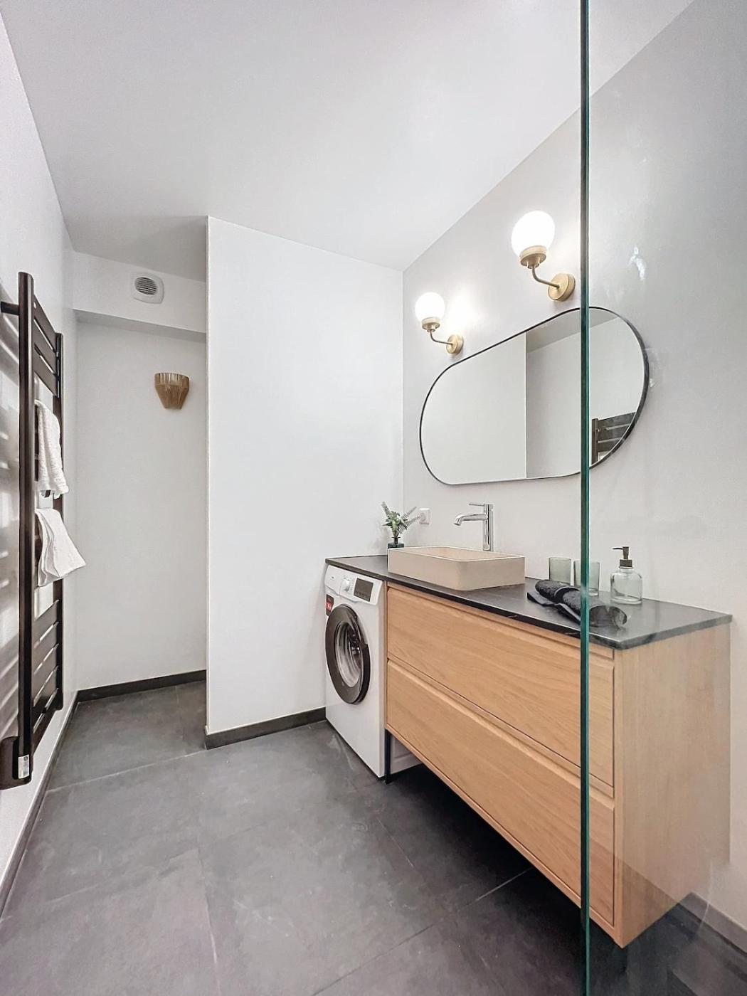 Appartement 1 Chambre. The well-fitted kitchen has a refrigerator, a dishwasher and an oven. The spacious apartment offers a flat-screen TV, a washing machine, a tea and coffee maker and heating. The unit has 2 beds.
