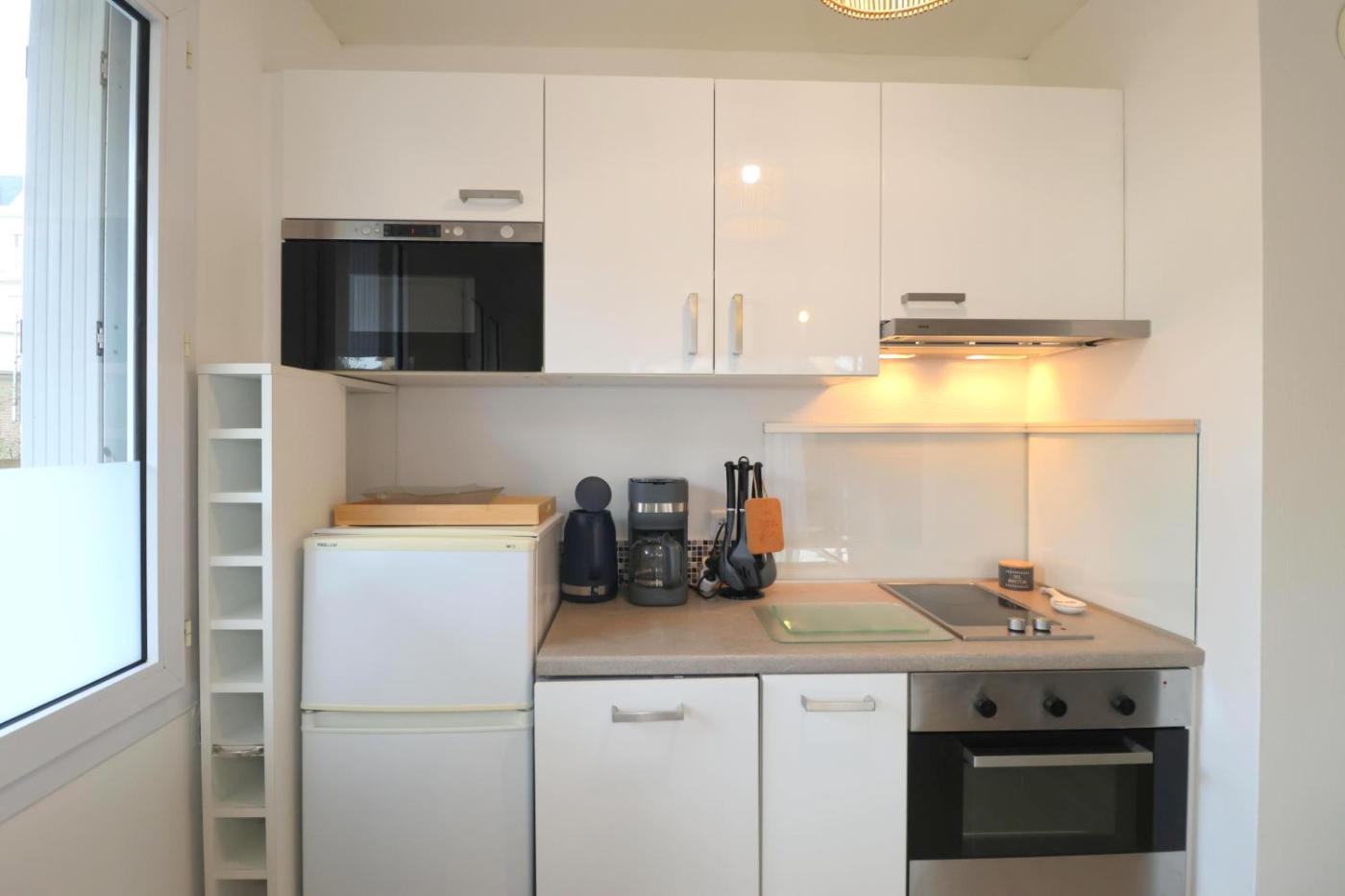 Appartement 1 Chambre. This apartment comes with 1 living room, 1 separate bedroom and 1 bathroom with a bath. Guests can make meals in the kitchen that features a stovetop, a refrigerator, kitchenware and an oven. This apartment has a washing machine, a tea and coffee maker, a TV and a terrace. The unit has 2 beds.