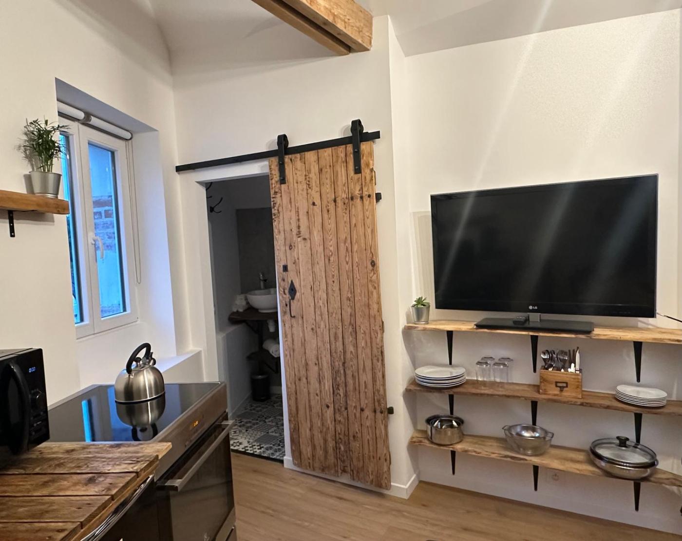 Studio Familial. Guests will find a stovetop, a refrigerator, kitchenware and an oven in the kitchenette. The studio also includes a barbecue. This studio is comprised of a flat-screen TV with streaming services, a private bathroom as well as a patio. The unit has 2 beds.
