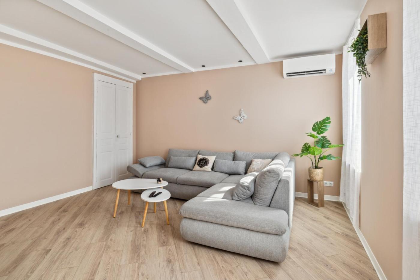 Cet appartement avec climatisation se compose de 2 chambres, dun salon, dune cuisine entièrement équipée avec un réfrigérateur et une bouilloire, ainsi que de 2 salles de bains avec une douche et un sèche-cheveux. Des serviettes et du linge de lit sont à votre disposition.